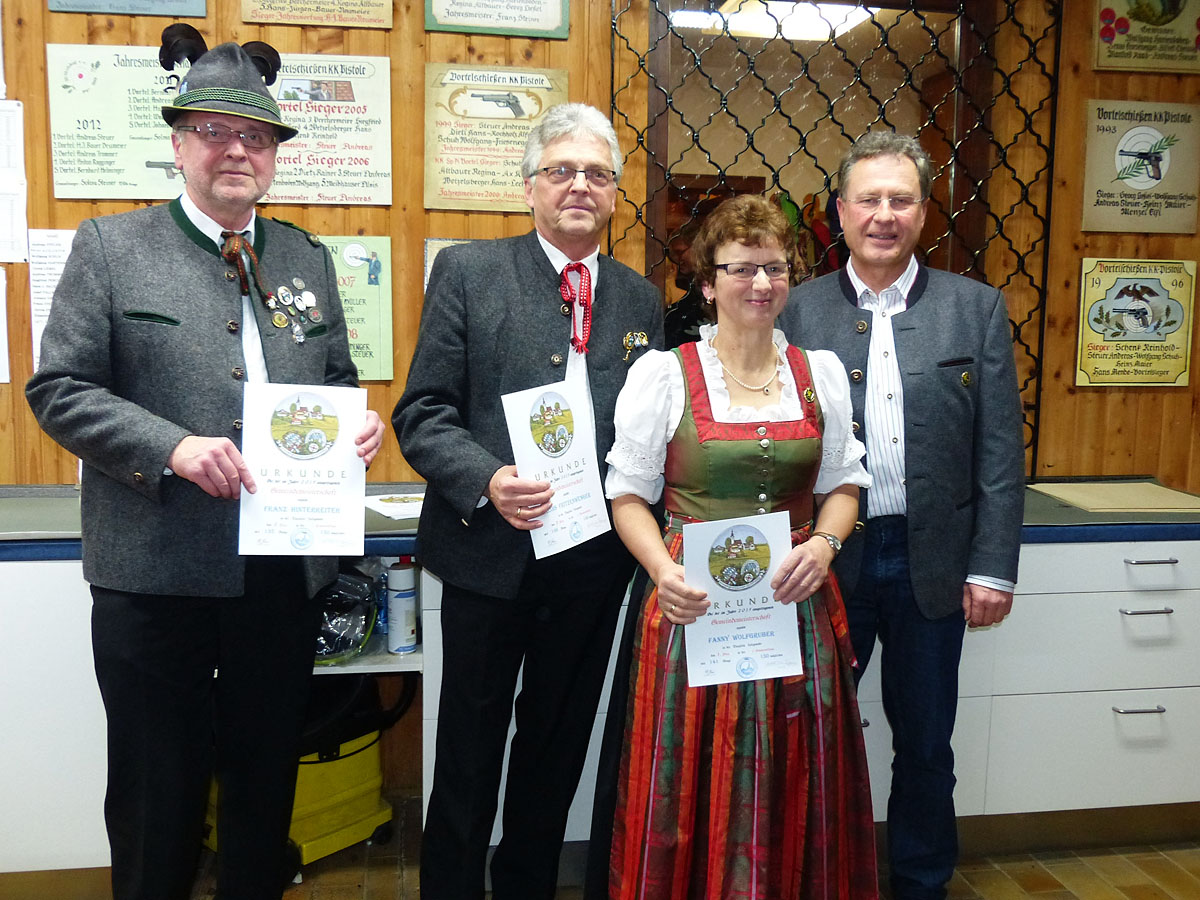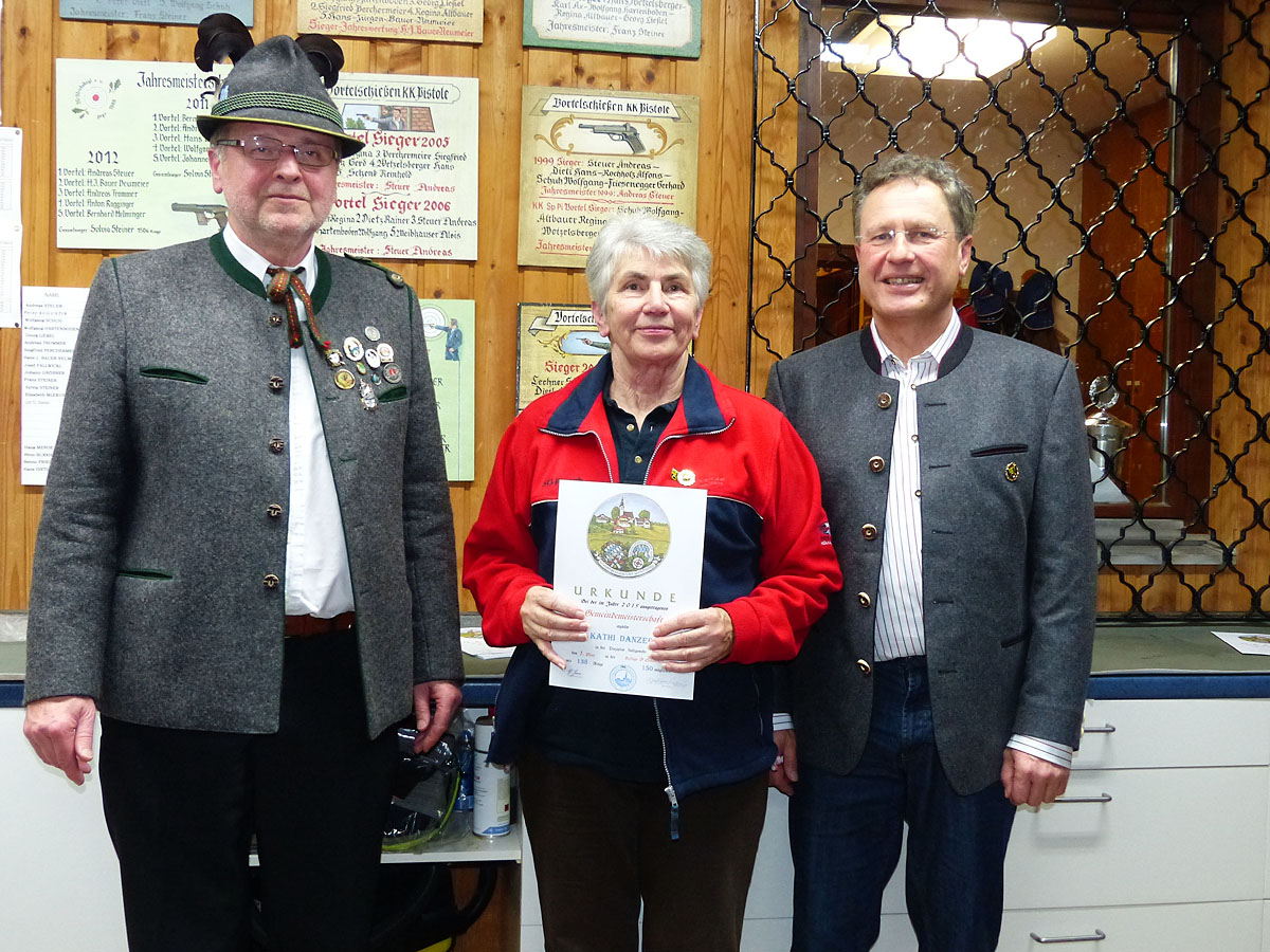 Darüber hinaus hatten wir 3 Gemeindemeister in unseren Reihen: Kathi Danzer war einmal mehr erfolgreich in der Klasse Senioren B der Auflageklasse und konnte einen weiteren Titel erreichen. Premiere dafür für Schützenmeister Alois Fritzenwenger, der gleich beim ersten Antreten in der Senioren A Auflage Klasse einen Gemeindemeister-Titel holen konnte. Und zu guter letzt traf auch noch Sportwart Markus Burgthaler ein paar Ringe und holte den Titel bei Luftpistole in der Klasse Junioren & Schützen.