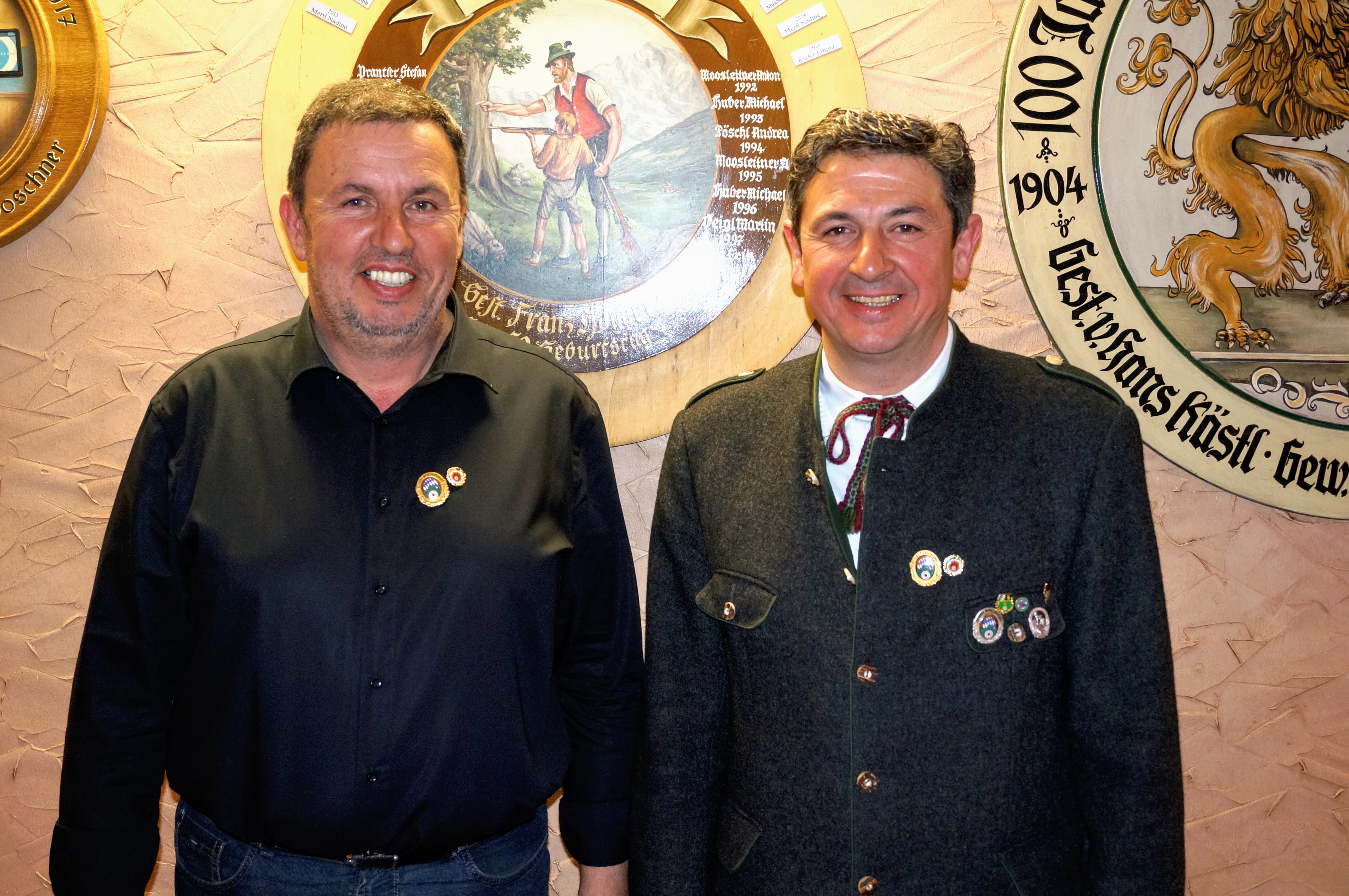 Für 40 Jahre Mitgliedschaft im Verein, dem Bayerischen Sportschützenbund und dem Deutschen Schützenbund wurden Johann Gamstatter sowie der 2. Schützenmeister Stefan Prantler geehrt. Letzter war in dieser Zeit 12 Jahre Jugendsportwart, 6 Jahre 1. Schützenmeister und inzwischen seit 17 Jahren 2. Schützenmeister.
