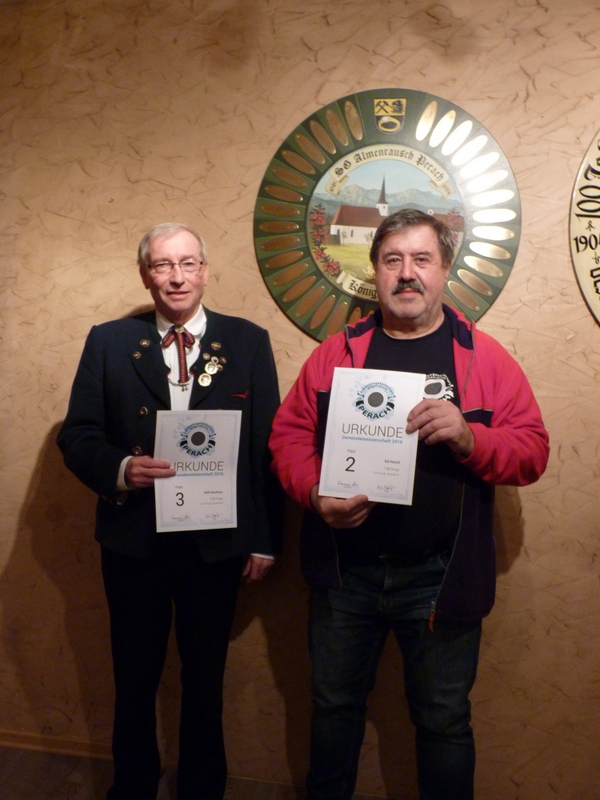 Zum offiziellen Ende der Preisverteilung galt von Alois Fritzenwenger allen Preisträgern die Gratulation. Hans Eisl, 1. Schützenmeister der SG Eichenlaub Straß, bedankte sich namens aller beteiligten Vereine bei der SG Perach für die perfekt organisierte Gemeindemeisterschaft 2016 und lud gleichzeitig schon mal zur 54. Gemeindemeisterschaft im kommenden Jahr nach Straß ein. Wie es sich gehört und bei Schützen üblich wurden die Titelträger gebührend gefeiert und das gesellschaftliche Miteinander unter den Vereinen mit manch lustiger Anekdote gepflegt. (Text: Schlosser, Fotos: Reichl, Fritzenwenger)