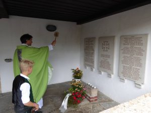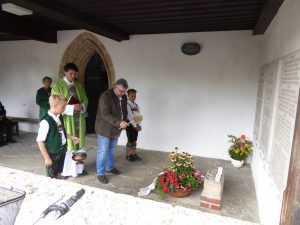Pfarrer Bien sagte, man wolle die Verstorbenen der Barmherzigkeit Gottes anvertrauen und zu den Rufen des Priesters gaben die Gläubigen mit „Der Herr ist mein Hirt“ den Antwortgesang. Dem Vaterunser folgten die Segnung der niedergelegten Blumenschale sowie die Ehrentafeln an der Wand der Vorhalle, durch den Seelsorger.