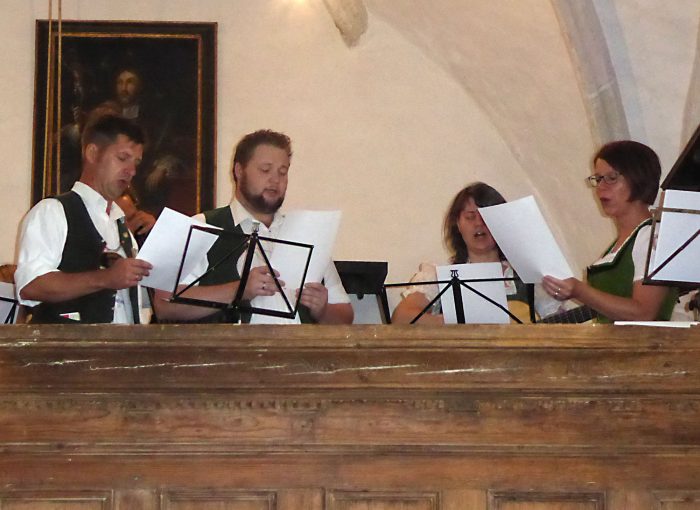 „Ite missa est“ lautete es mit klaren Stimmen aus den Kehlen des „Ainringer Vierg’sang“ das letzte Lied zur Aufführung. Den musikalischen Schlusspunkt setzten die „Glorreichen Vier“ mit munterer und zupackender Spielweise mit dem Stück „Auszug“.