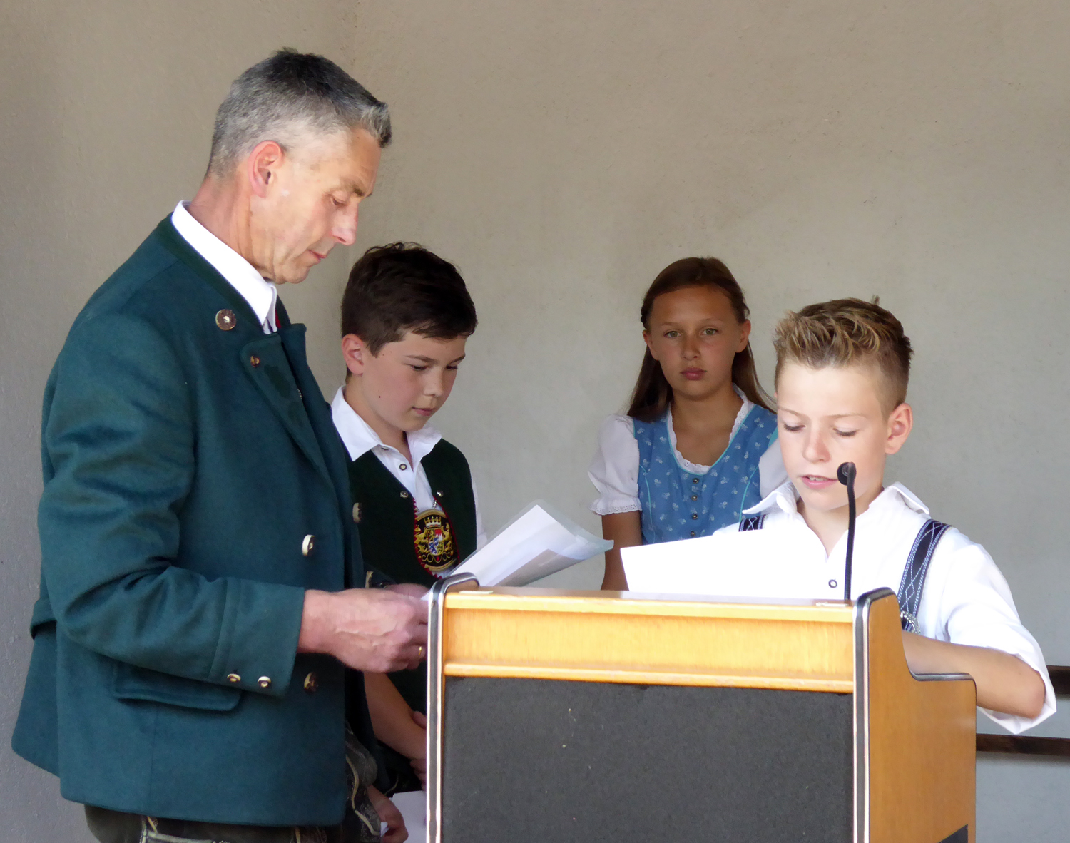 In seiner Ansprache dankte er unter anderem allen, die da sitzen und zuhören. „Jesus im Evangelium sagt, dass sie die bessere Hälfte gewählt haben, oft schwer erträglich für Menschen, die selber sehr aktiv sind. Heute sehnen sich viele Leute nach Ruhe in unserer lauten, hektischen Welt.“ Der Seelsorger sprach von kontemplativen Menschen, die zuhören und wo man seine Sorgen abladen könne. Moritz, Michael und Valentin trugen die Fürbitten vor. Eine Bitte lautete: „Guter Gott, in einem Vereine leben Alt und Jung zusammen. Wir bitten dich, bestärke uns in dieser Arbeit, dass unsere Verein auch weiterhin aufrecht erhalten bleiben und hilf, dass sich immer wieder neue Mitglieder für diese wertvolle Aufgabe finden lassen.“