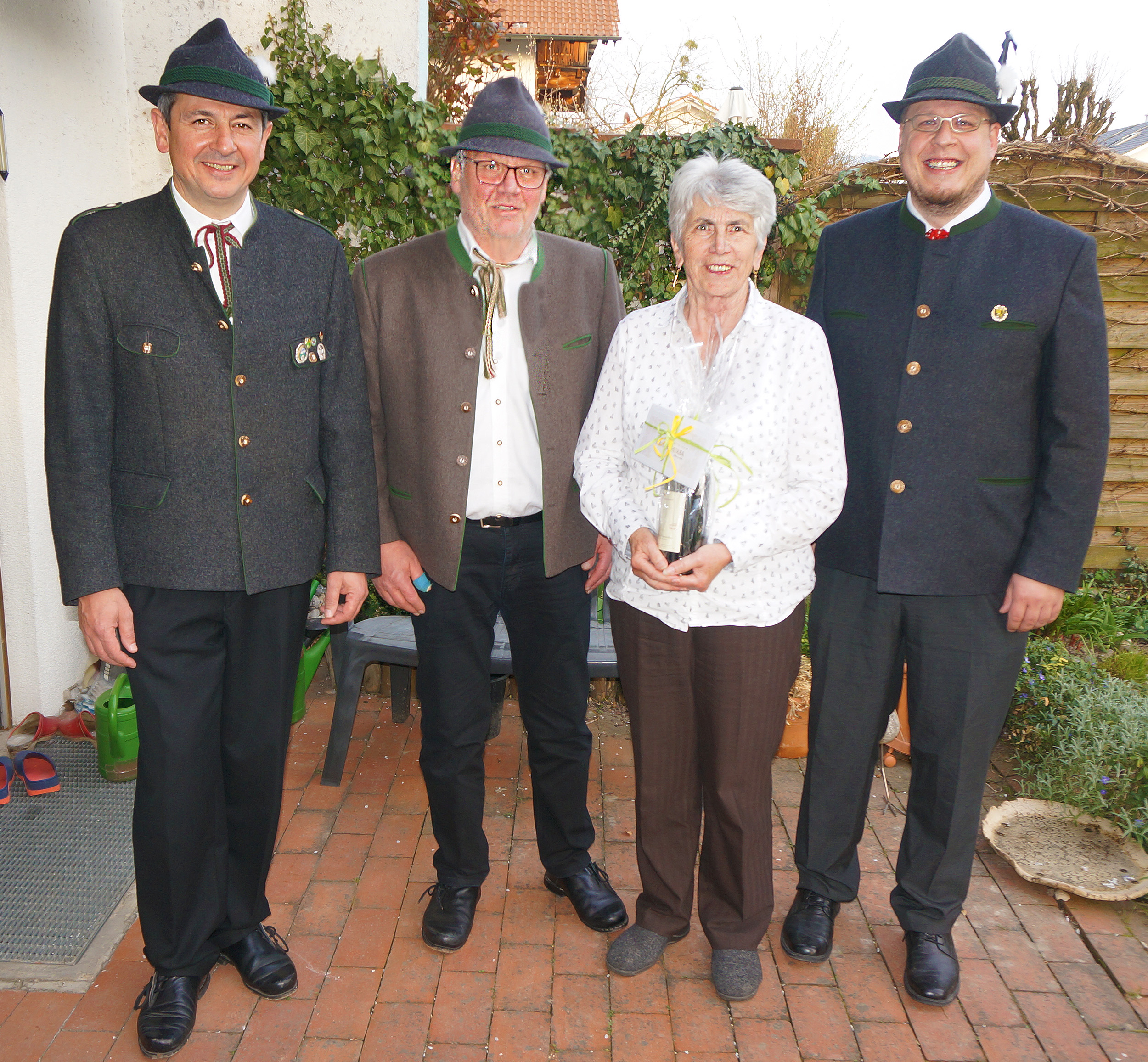 Kathi Danzer feierte kürzlich ihren 75. Geburtstag. Herzliche Glückwünsche von der Schützengesellschaft Almenrausch Perach überbrachten Stefan Prantler, Martin Geigl und Markus Burgthaler.