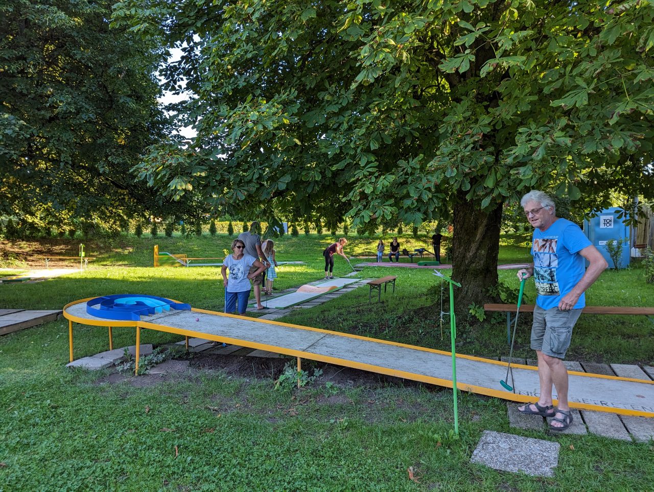 Die Schützengesellschaft Almenrausch Perach veranstaltete ein Familien-Minigolfturnier, das alle Altersgruppen ansprach. Insgesamt 30 Teilnehmer im Alter von 8 bis 85 Jahren nahmen teil. Der Austragungsort war der Minigolfplatz von Gabi Schweiger in Mitterfelden.