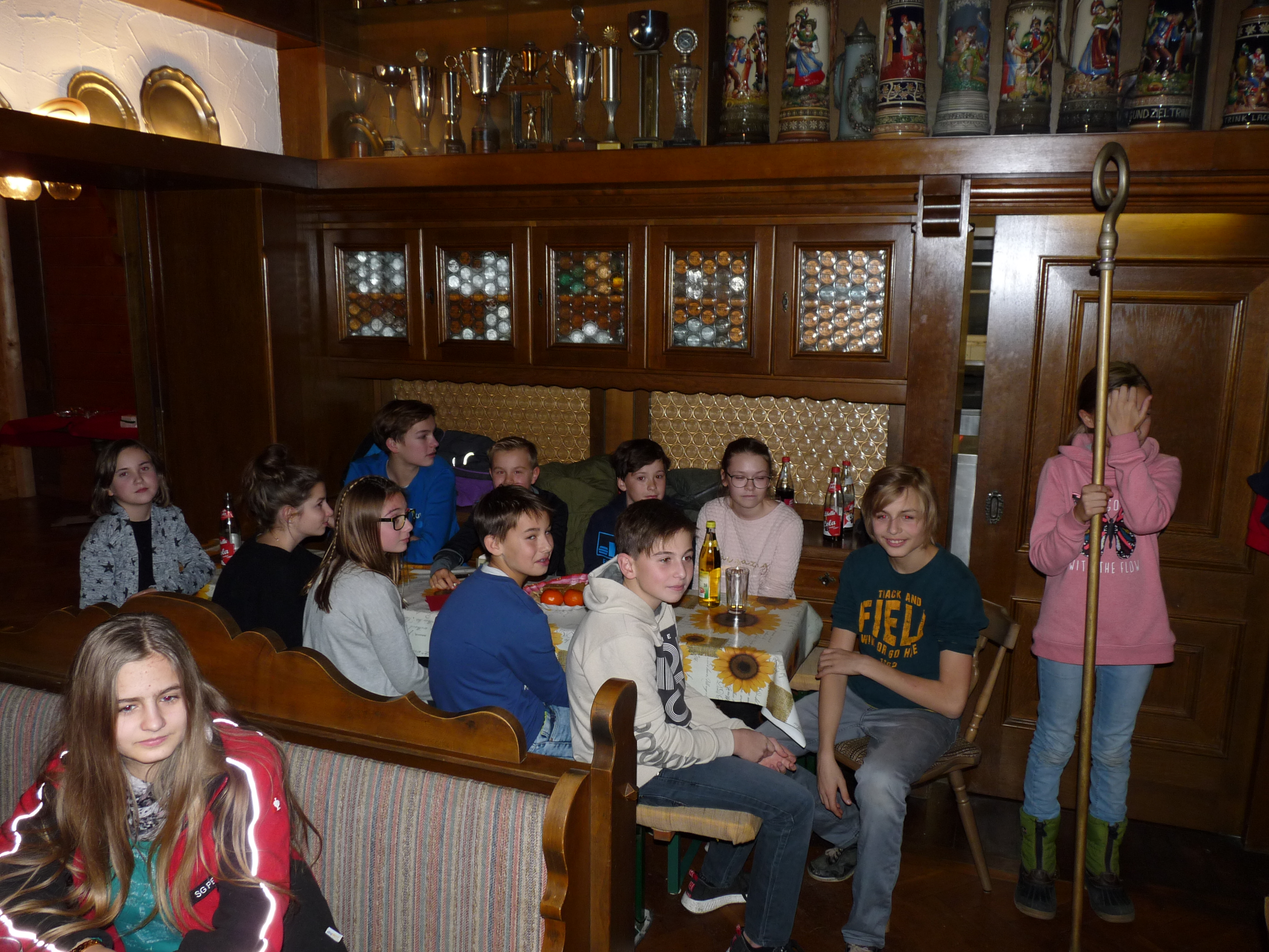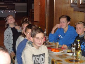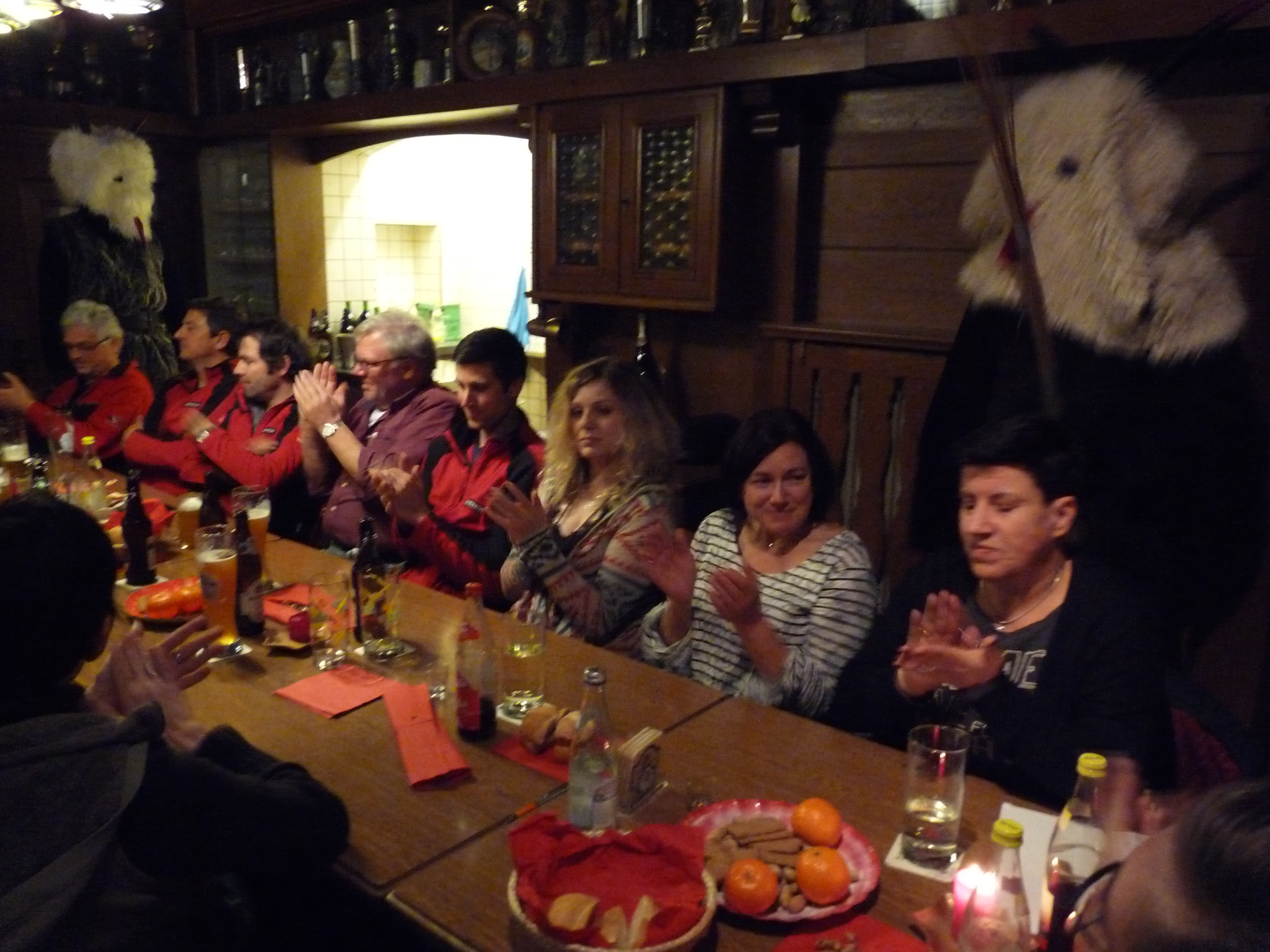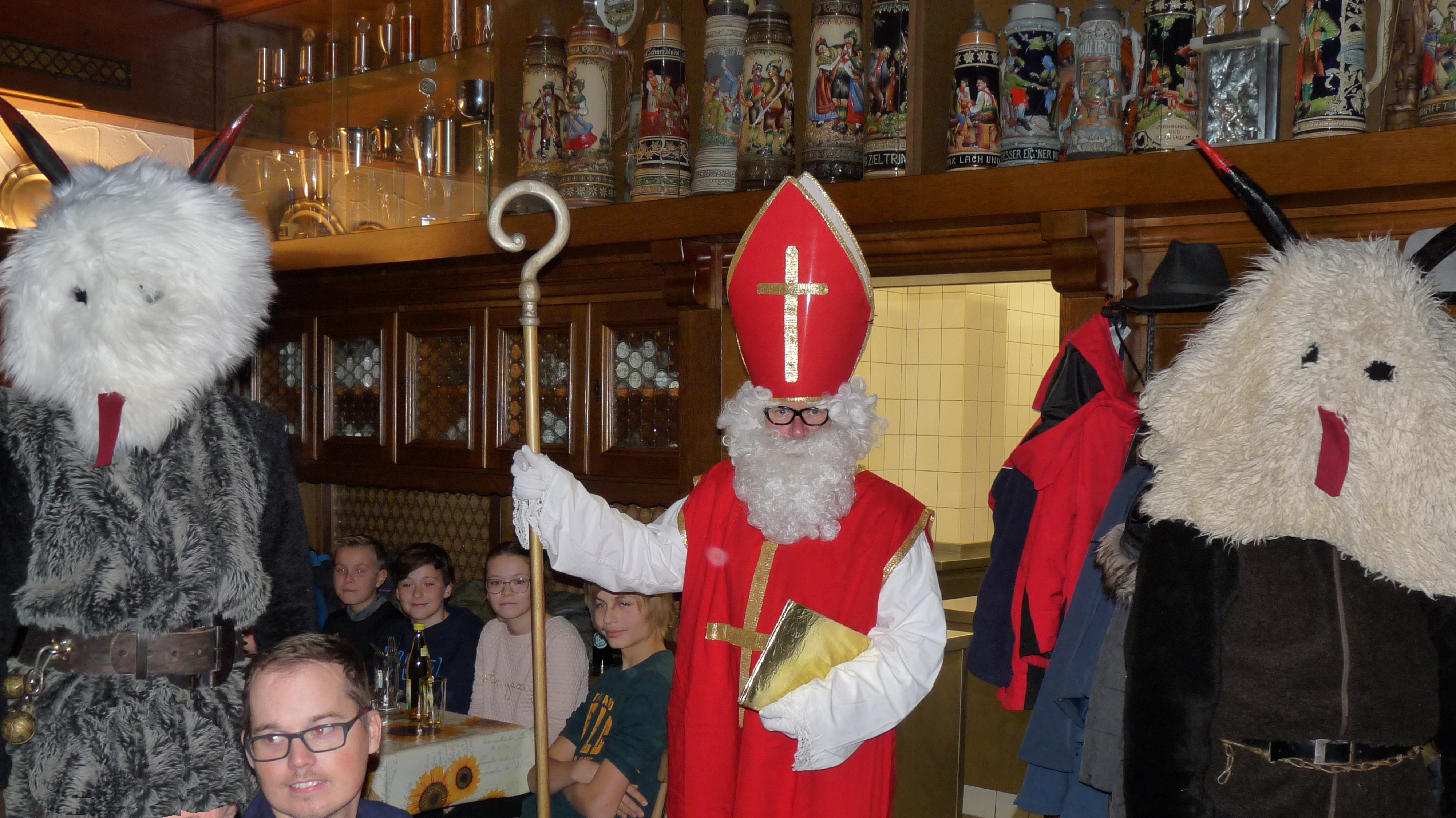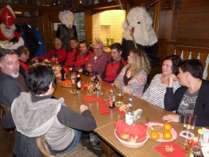 Nach dem gemeinsamen Essen wartete man gespannt auf den Nikolaus und seine Krampusse. Der Bischof lobte die Schützenjugend und Schützen für ihre rege Beteiligung an sportlich-geselligen Aktivitäten, tadelte aber auch so manches Fehlverhalten einzelner Personen, wobei ihn die Krampusse tatkräftig mit ihren Ruten unterstützten. Über die derzeit acht Jungschützen und die Mithilfe der Jugend im Verein war der Nikolaus besonders erfreut. Großes Lob erhielt Erwin Danzer, der die Vereinschronik (bisher von Franz Hogger geführt) weiterführt, sämtliche Fahrer zu den Rundenwettkämpfen, der Jugendtrainerin Nadine Mertl und Heidi Kästl, die wie immer um Ordnung und Sauberkeit im Schützenstüberl bemüht ist. Damit keiner Durst und Hunger leiden musste, sorgten Alois Fritzenwenger und Martin Geigl für die Bewirtung der Schützen. Der Vereinsführung Markus Burgthaler mit seinen Vorstandsmitgliedern galt ebenfalls ein großer Dank. Der Nikolaus mit seinen Krampussen verteilte an alle anwesenden Kinder ein bunt gemischtes Sacker’l und zog vor seiner Verabschiedung noch die „Siegernummer“ des Nussen-Schießens.