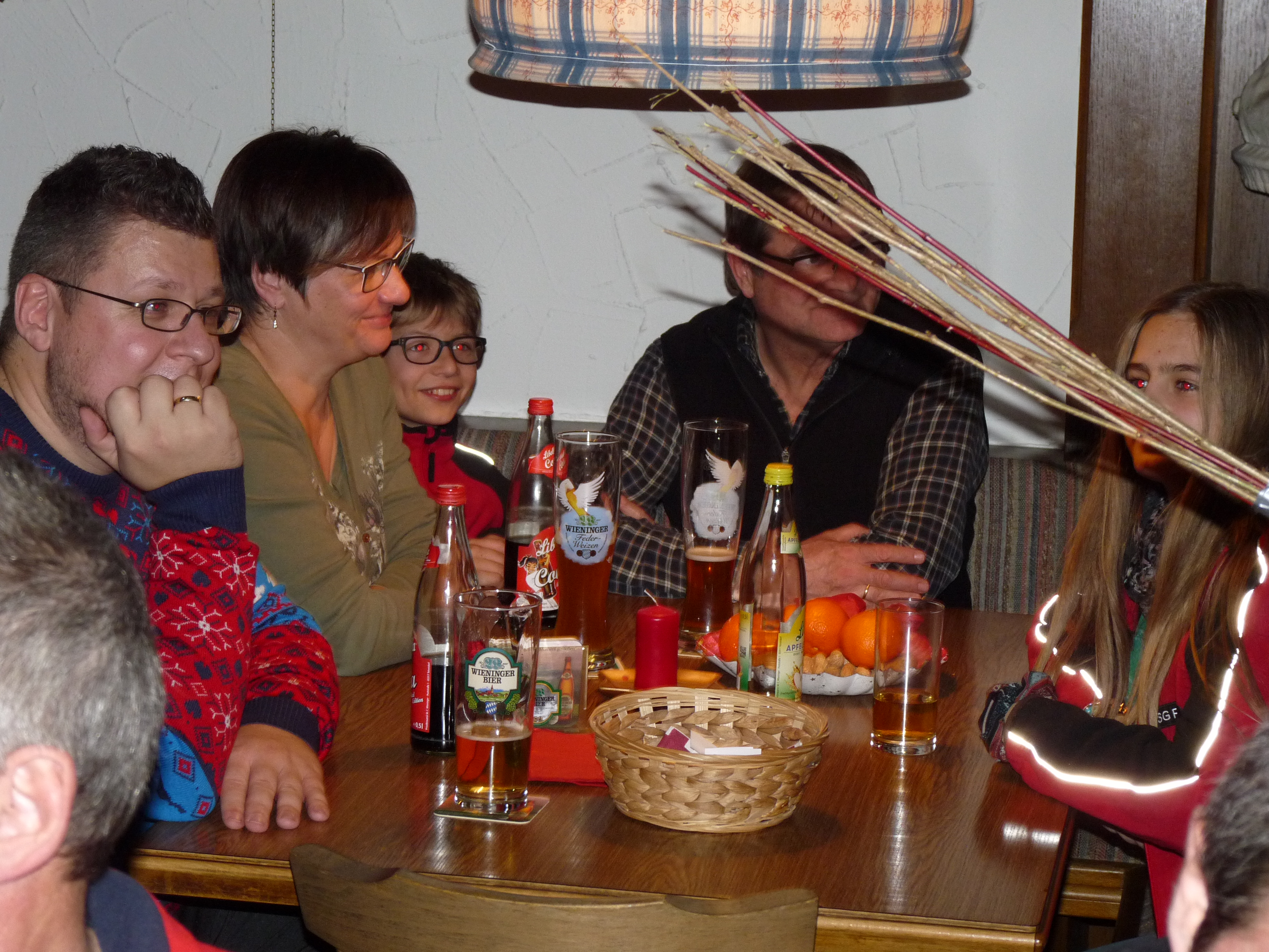 Die Jubilare spendierten das gemeinsame Essen, sowie Sachpreise, welche auf einen Näherungsteiler ausgeschossen wurden. Mit dem „Schuss auf die Nuss“ stellten sich die Teilnehmer dem Nikolo-Wettbewerb, wo es passende Preise zu gewinnen gab. Auch der Heilige Nikolaus mit seinen schaurigen Begleitern besuchte die Schützenfamilie. In der voll besetzten Gaststube des Gasthauses Alpenblick präsentierten sich die Tische weihnachtlich geschmückt. Zunächst begrüßte 1. Schützenmeister Markus Burgthaler die zahlreich erschienenen Mitglieder mit Familienangehörigen. Ein besonderes Willkommen galt dem Ehrenschützenmeister Franz Hogger sowie den Ehrenmitgliedern Hans Kästl, Werner Wieberger und Hans Klinger.