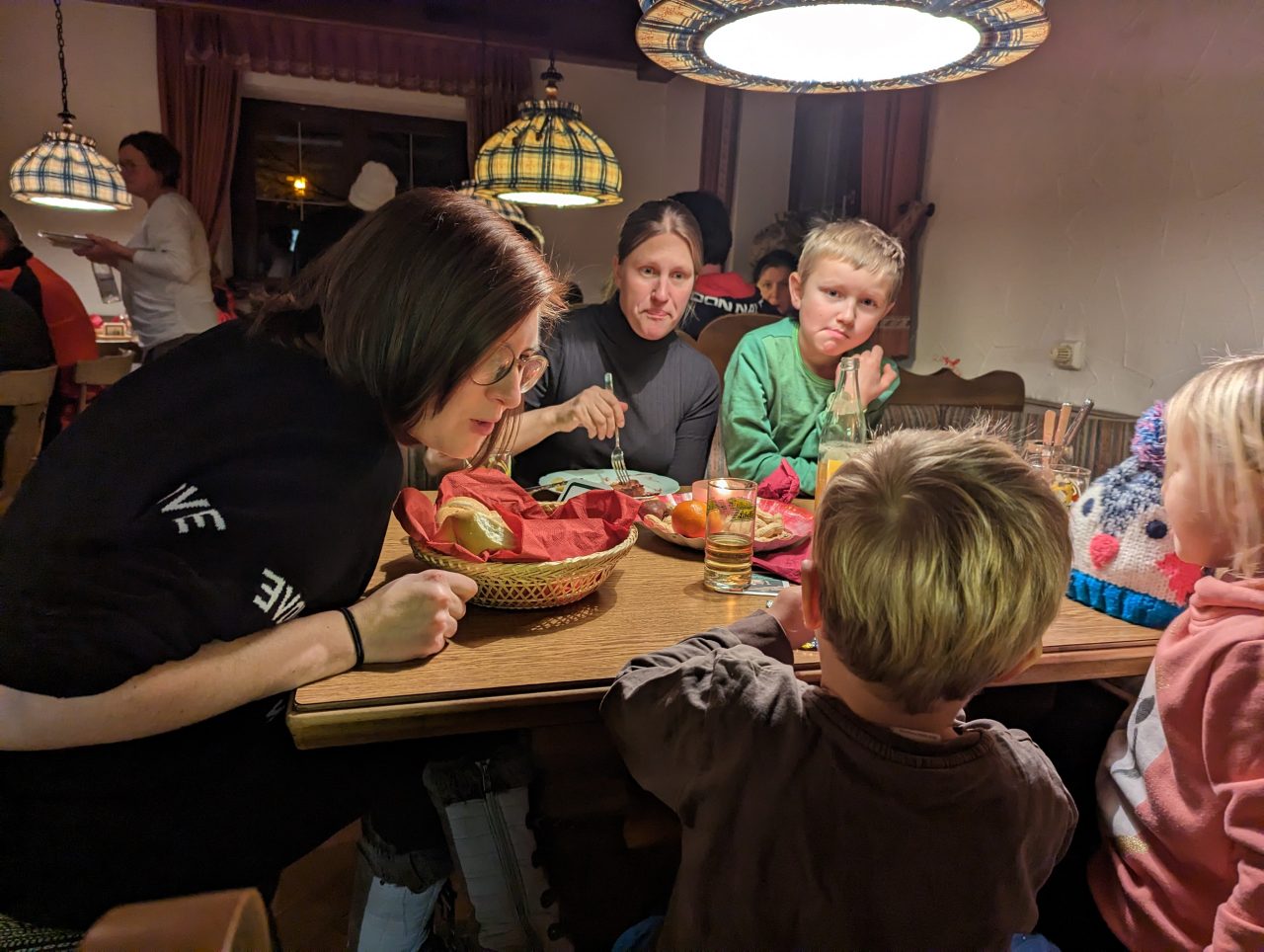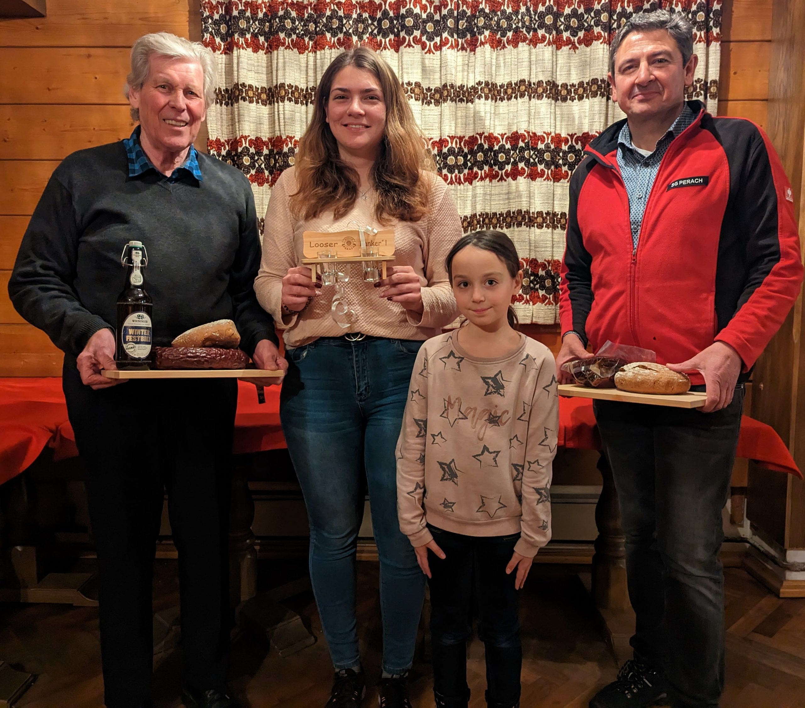 Nach dem gemeinsamen Essen in der Gaststube kam dann auch endlich der Nikolaus, hat ein paar lobende und sehr wenig tadelnde Worte dabei. Was soll man bei so vielen braven Leuten auch negatives sagen. Für alle Kinder und Jugendliche gab es ein Sackerl mit ein paar Leckereien und der Nikolaus zog auch den Gewinner. Der durfte dann die Nummer von Platz 2 ziehen und so weiter.