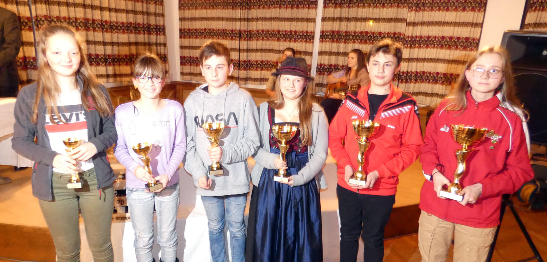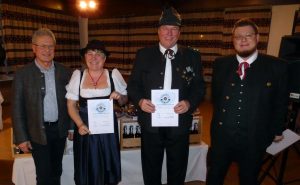 Die Tische im ehemaligen Gasthauses „Alpenblick“ waren geschmückt und die Pokale und Verzehrpreise waren dekorativ ausgestellt. Die Veranstaltung eröffneten die Geschwister Biel mit der „Salzburger Zweischrittpolka“ mit Bernhard (Ziach) und Bettina (Gitarre). 1. „Almenrausch“-Schützenmeister Markus Burgthaler vom durchführenden Verein begrüßte seine Schützenmeister–Kollegen, die Musiker Bettina und Bernhard und hieß Schirmherrn Bürgermeister Hans Eschlberger herzlich willkommen. Er richtete einne großen Dank an die Teilnehmer. Vor einem Jahr bei der Preisverteilung schaute es noch so aus, dass in Perach eine Gemeindemeisterschaft ausgetragen werden könne wegen der geringen Zahl von fünf Schießständen. Nach Diskussionen zeigte sich die Schützenmeister der anderen drei Vereine sehr kooperativ und unkompliziert und man fand die Lösung einer Gemeindemeisterschaft ohne Preisschießen. Bürgermeister Hans Eschlberger habe einen Luftgewehr-Pokal spendiert dafür bedankte sich Burgthaler im Namen der Vereine. Namentlich bedankte er sowie bei Hausherrn Christian Schaider für die Bereitstellung der Räumlichkeiten und bei den Sponsoren. Ohne die zahlreiche Mithilfe der eigenen Mitglieder wäre diese Veranstaltung nicht zu stemmen gewesen, daher zollte er diesen ebenfalls einen Dank.