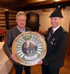 Schirmherr Bürgermeister Hans Eschlberger meinte zu Beginn seiner Rede, wenn man diesen Raum betrete, dann spüre man da sei eine herzliche Kameradschaft unter den Vereinen: „Ihr seit’s eine freundschaftliche Verbundenheit.“ Er betonte, die Peracher Schützen seien der traditionsreichste Verein in der Gemeinde, der die Gemeindemeisterschaft wieder pfundig organsierte und dafür sprach er von seiner Seite ein herzliche Vergelt’s Gott aus.