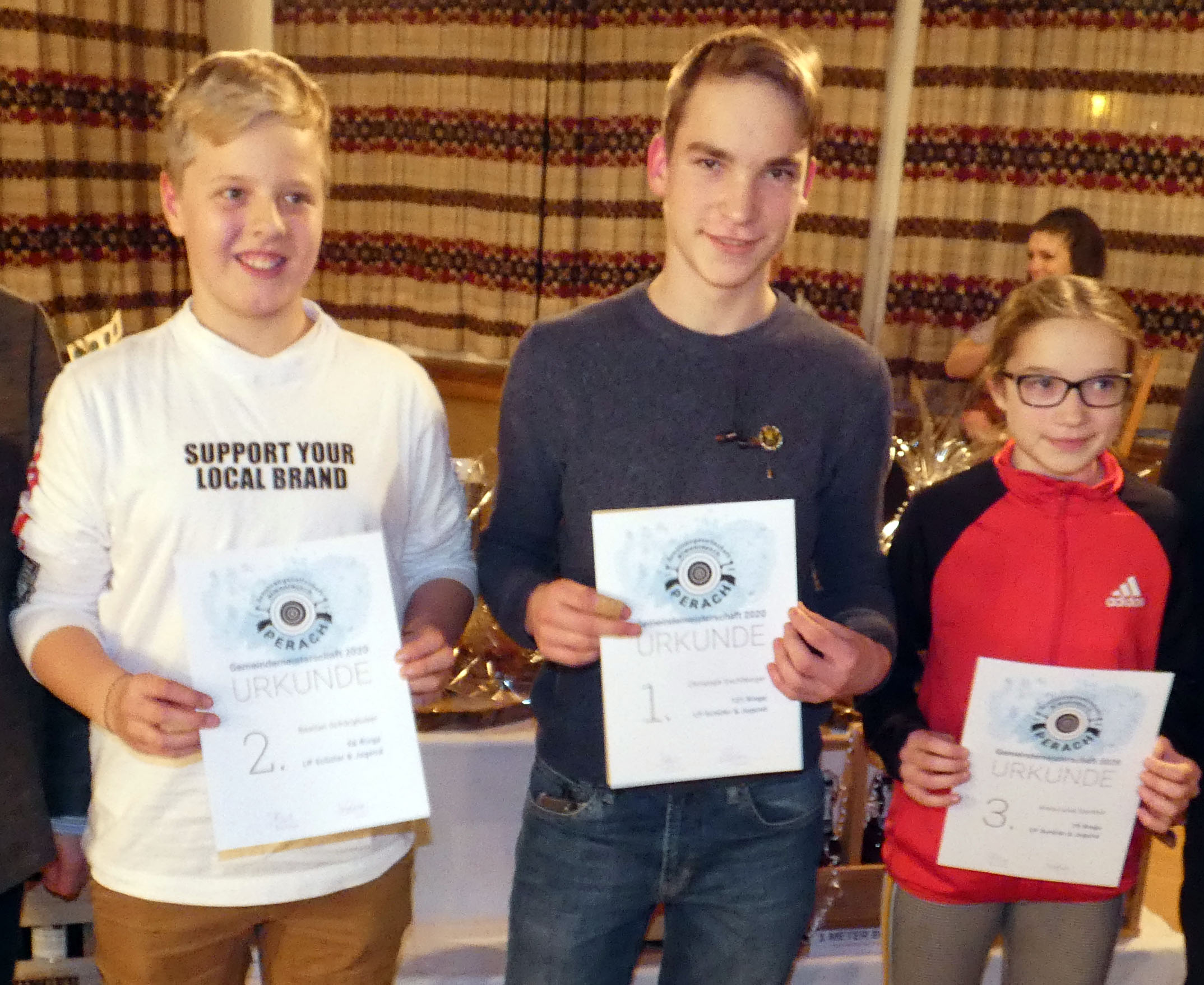 Die höchste Ringzahl mit 142 schoss Katharina Schindler (A) beim Nachwusch Luftgewehr Junioren m+w, Damensiegerin wurde Stefanie Hänsch (A) 140 Ringen und mit der selben Ringzahl gewann bei den Herren Maximilian Eisl (S). bei den Männern war hier die stärkste Klasse mit 19 Teilnehmern. Souverän setzte sich Regina Eisl (S) in der LG Altersklasse mit 141 Ringen durch. Ein starkes Teilnehmerfeld hatte die LG-Herren-AK zu verzeichnen, nämlich 18 Schützen. Andreas Hiersig (A) schoss 141 Ringe und blieb somit einen Ringe vor Hubert Höglauer (U). Mit der Luftpistole in der Klasse Juniorinnen und Damen sicherte sich Sylvia Steiner (U) mit 141 Ringen den Gemeindemeistertitel, ebenso ihre Vereinskameraden Sebastian Heintze Junioren und Herren mit 134 Ringen sowie Elisabeth Miekusch in der AK m+w mit 137 Ringen. Titelträger wurden noch zwei Högler Schützen mit der LP schoss in der Seniorenklasse m+w Andreas Steuer 140 Ringe und in der Auflagerklasse m+w Wolfgang Schuh 145 Ringe. Unter 17 Schützinnen und Schütze setzte sich in Klasse LG Auflage Senioren A Franz Eder (S) mit 148 Ringen vor seinem Vereinskameraden Hans Eisl mit 145 Ringen durch.