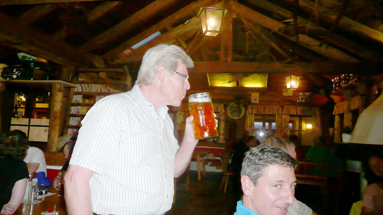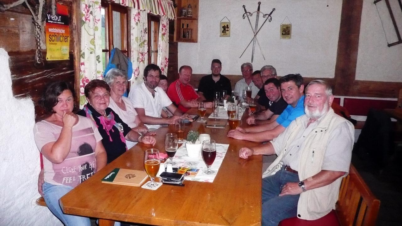 In der urigen Gaststube des „Raggei-Bräu“ waren für die grenznahen oberbayerischen Gäste genügend Plätze reserviert. Dort hatten auch die bereits eingetroffenen Fahrgemeinschaften Platz genommen. Bei willkommenem kühlen Trunk und herzhaft kulinarischen österreichischen Köstlichkeiten konnten die „anstrengenden Strapazen“ und Regenschauer sofort vergessen werden.