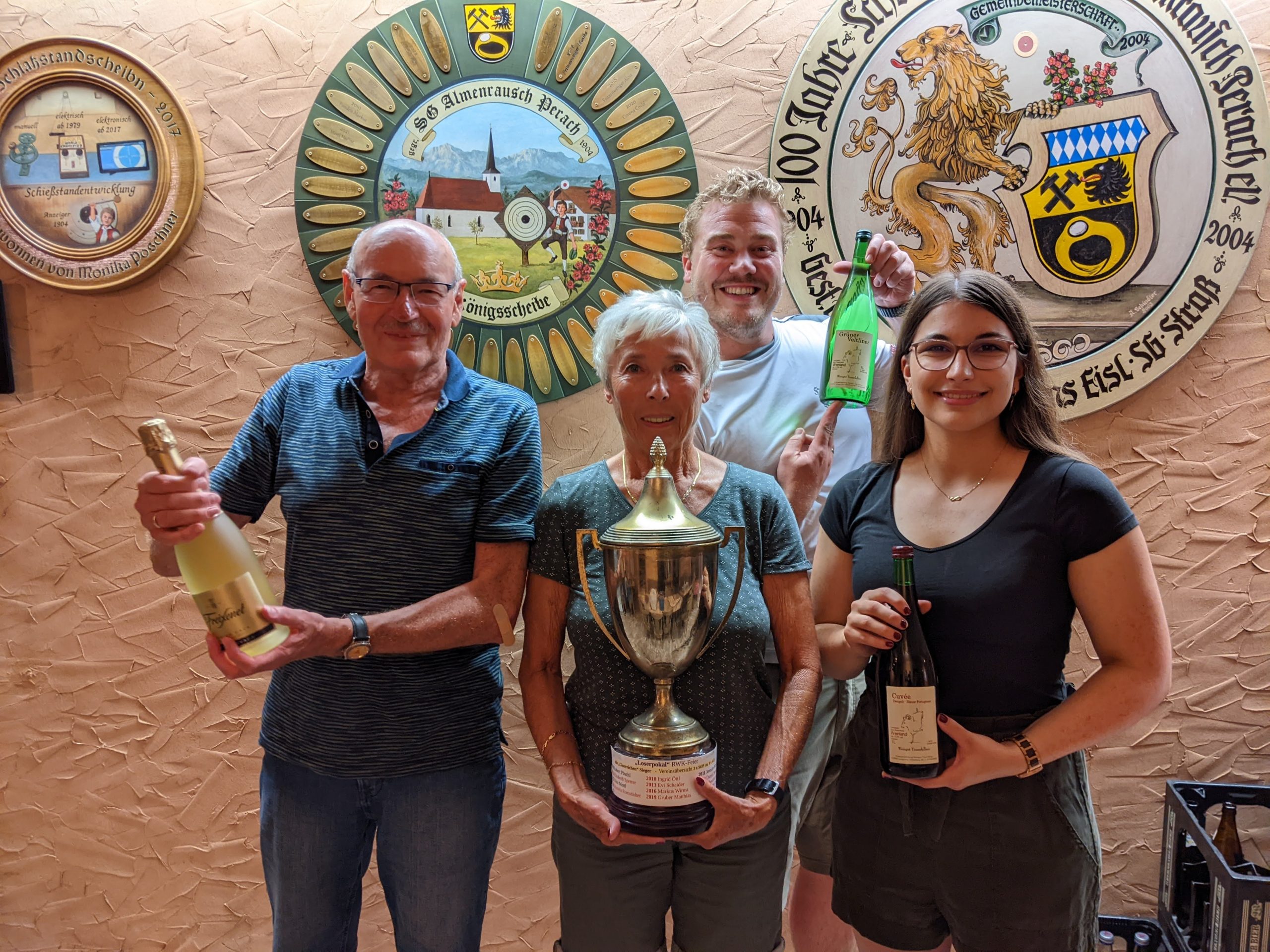 Höhepunkt des Triathlons ist immer die Bekanntgabe, wer den „Loserpokal“ bekommt. Dabei handelt es sich um einen fast schon „antiken“ Wanderpokal. Nachdem der Pokal die letzten Jahre immer im Brodhauser Besitz war, war man gewillt, diesen Pokal dieses Jahr den Gastgebern zu überlassen. Leider ging dieses Vorhaben auch dieses Jahr schief und so holte Lisbeth Sperrer (exakt 10 Jahren nachdem Sie den Pokal schon einmal gewonnen hatte) den Pokal erneut nach Brodhausen. Im Anschluss an die Siegerehrung bewiesen die Schützen auch nach den Corona-bedingten Ausfällen der letzten Jahre wieder, dass nicht nur ihre Kondition beim Schießen sehr gut ist, sondern auch das Sitzfleisch gut trainiert ist. Erst nach Mitternacht fand das lustige Treiben ein Ende. Auch wenn man die weiteren Entwicklungen rund um das Thema Corona noch nicht abschätzen kann, waren sich alle Beteiligten einig, dass diese gelungene Veranstaltung nach Möglichkeit auch in den weiteren Jahren fortgeführt werden soll.